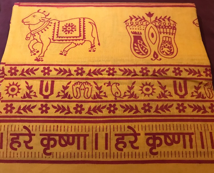 Mala bag to store beads for japa (chanting mantras). Made in India out of pure cotton. Strap to hang around neck if doing lots of rounds (repetitions).