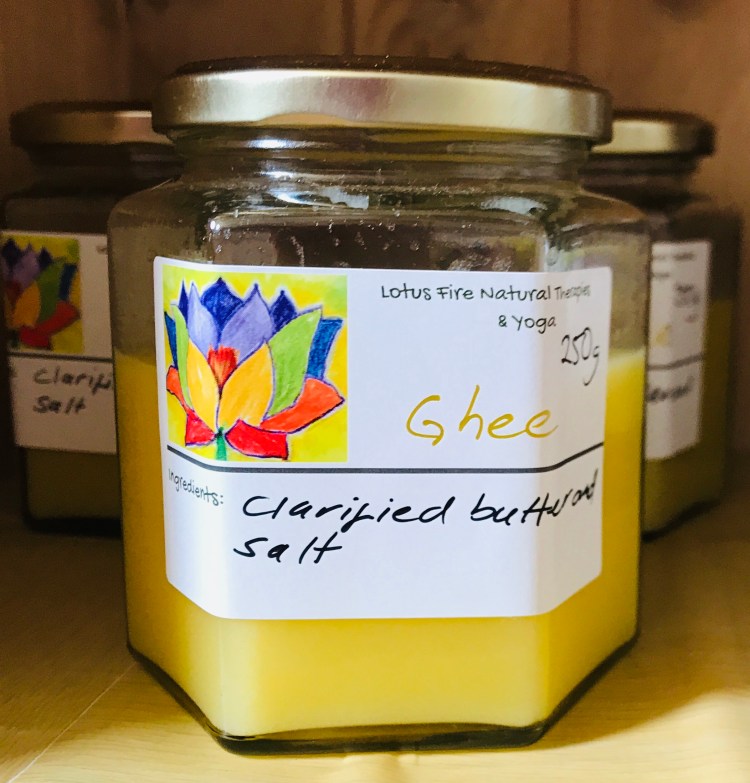 Ghee contains vitamins A, D, E, K, omega-3/6 fatty acids and is an antioxidant and promotes a healthy gut and it good for the immunity. Improving condition of hair, skin, lubricating the joints and body bringing suppleness.