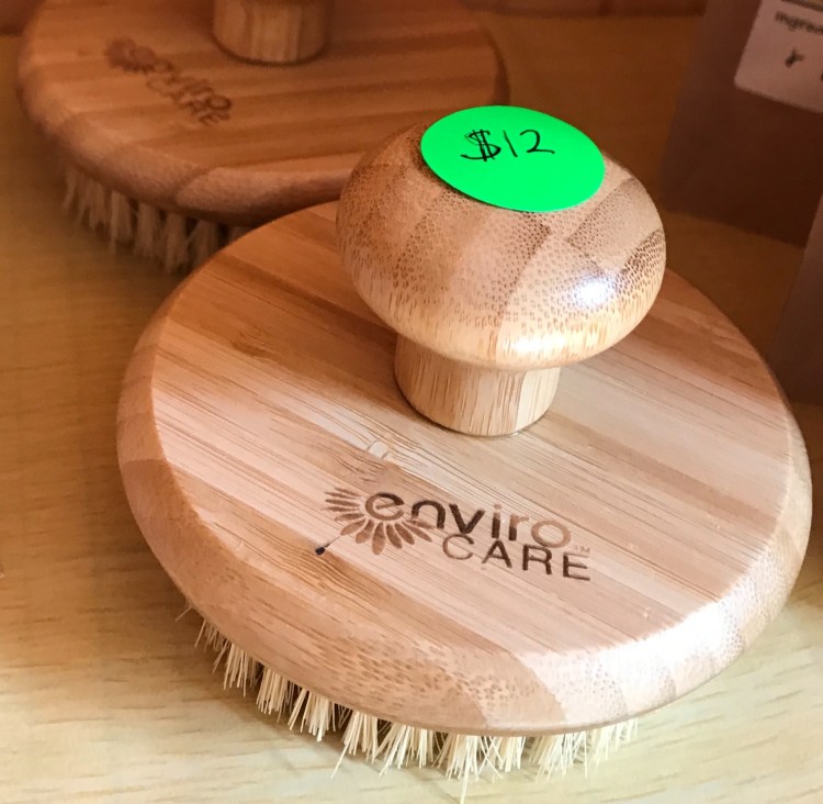 It is made from bamboo and cactus and the bristles go soft and clump together when wet. Improves circulation and skin tone.